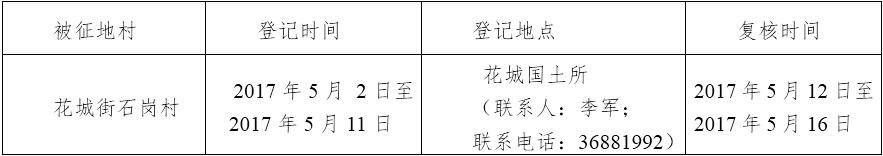 二、征收土地位置:广州市花都区花城街石岗村。(四至范围详见附图)