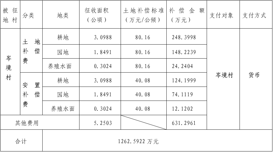 四、征地补偿安置方案: