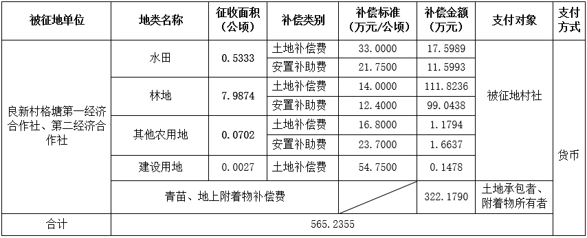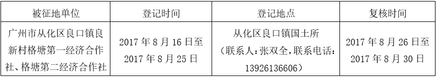 (二)本次征收土地所涉及的被安置农业人员由广州市从化区良口镇良新村格塘第一经济合作社、格塘第二经济合作社以货币补偿等形式安置。