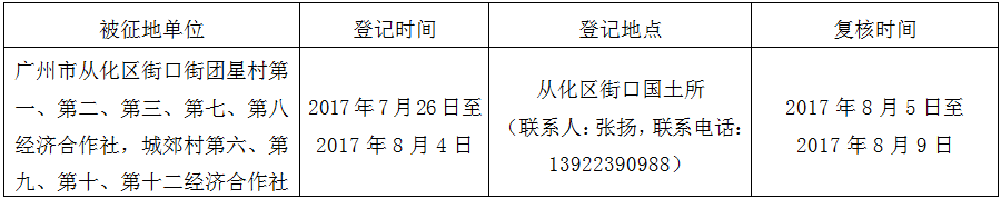 经广州市人民政府同意并经沙巴体育APP批准(粤国土资(建)字〔2015〕1359号)同意将广州市从化区街口街团星村第一、第二、第三、第七、第八经济合作社和街口街城郊村第六、第九、第十、第十二经济合作社共13.8987公顷集体土地征收为国有土地。现将经依法批准的《征收土地方案》、市人民政府批准的《征地补偿安置方案》内容和有关事项公告如下: