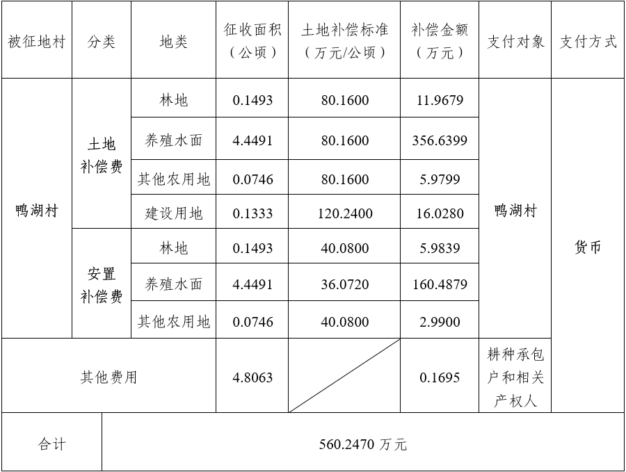 四、征地补偿安置方案:
