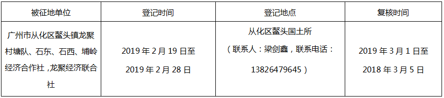 经广州市人民政府同意并经沙巴体育平台批准(粤国土资(建)字〔2016〕524号)同意将广州市从化区鳌头镇龙聚村地段2.7426公顷集体土地征收为国有土地。现将经依法批准的《征收土地方案》、广州市人民政府批准的《征地补偿安置方案》内容和有关事项公告如下: