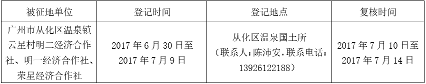 经广州市人民政府同意并经沙巴体育平台批准(粤国土资(建)字〔2017〕17号)同意将广州市从化区温泉镇云星村地段2.5465公顷集体土地征收为国有土地。现将经依法批准的《征收土地方案》、市人民政府批准的《征地补偿安置方案》内容和有关事项公告如下: