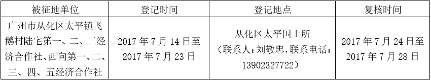 (二)本次征收土地所涉及的被安置农业人员由广州市从化区太平镇飞鹅村陆宅第一、二、三经济合作社、西向第一、二、三、四、五经济合作社以货币补偿等形式安置。