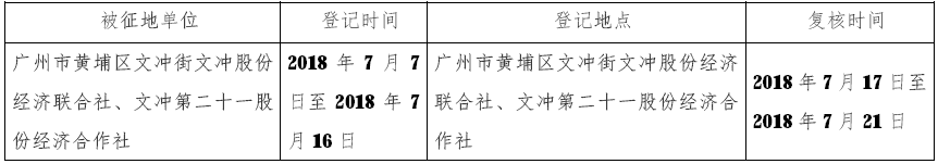 (二)本次征收土地所涉及的被安置农业人员由广州市黄埔区文冲街文冲股份经济联合社、文冲第二十一股份经济合作社在本公告期内到广州开发区 广州市黄埔区国土资源和规划局领取办理安置农业人口征地农转非手续的函件。