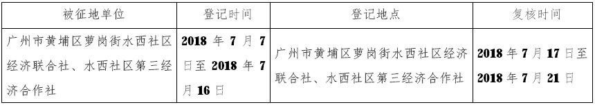 经省人民政府批准(粤府土审(02)〔2018〕21号文),需将广州市黄埔区萝岗街水西社区经济联合社、