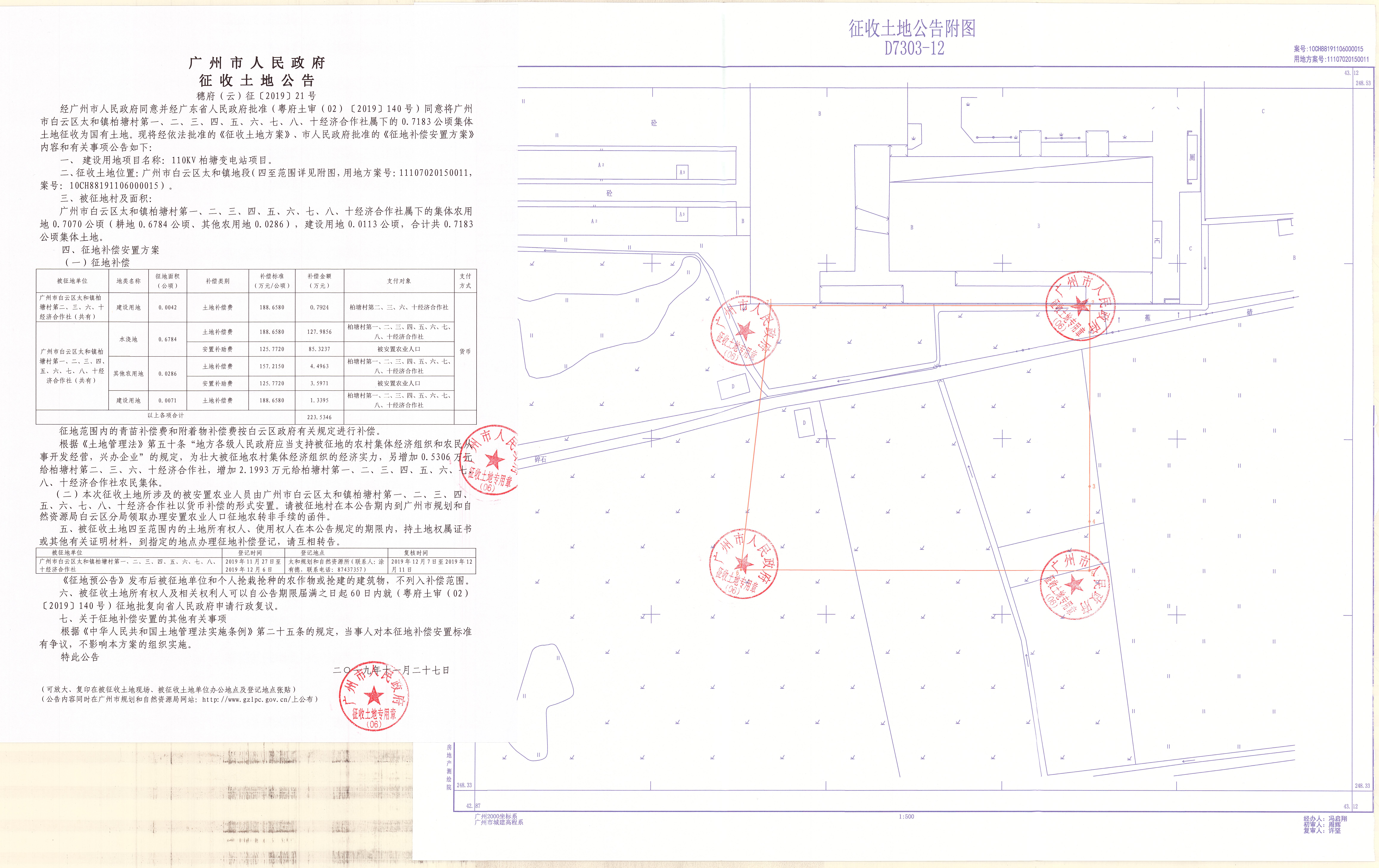 经广州市人民政府同意并经沙巴体育APP批准(粤府土审(02)〔2019〕140号)同意将广州市白云区太和镇柏塘村第一、二、三、四、五、六、七、八、十经济合作社属下的0.7183公顷集体土地征收为国有土地。现将经依法批准的《征收土地方案》、市人民政府批准的《征地补偿安置方案》内容和有关事项公告如下: