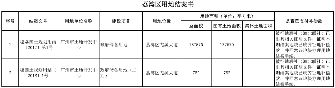 荔湾区用地结案信息