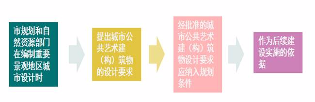 (三)第四条明确了政府有关部门在推动城市公共艺术建设发展中的职责,管理职责范围包括城市公共艺术建(构)筑物的规划、设计、建设实施等。