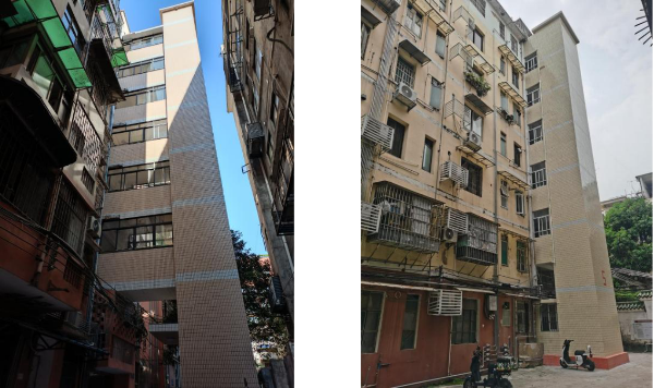 工业大道北某楼栋加梯现状           荔福路5号加梯现状