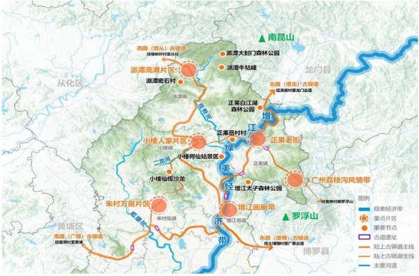 ●一条战略主廊道:即增江建设绿美经济带,将其打造为联动区域、融合产城景文的战略主轴。