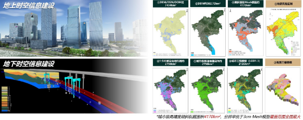 • 数据资源层:依托“一次测绘、多项成果”的创新模式,构建“地上地下、海陆一体、空地协同”的全域二三维时空数据体系,融合雨洪空间与竖向专题、多源卫星遥感监测城市安全、地下空间、土地招商、名城保护、低空基础设施管控等多项专题数据资源;