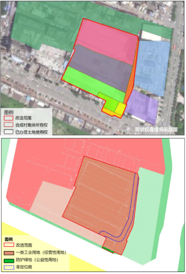 图 现状权属情况示意及项目土地利用规划图