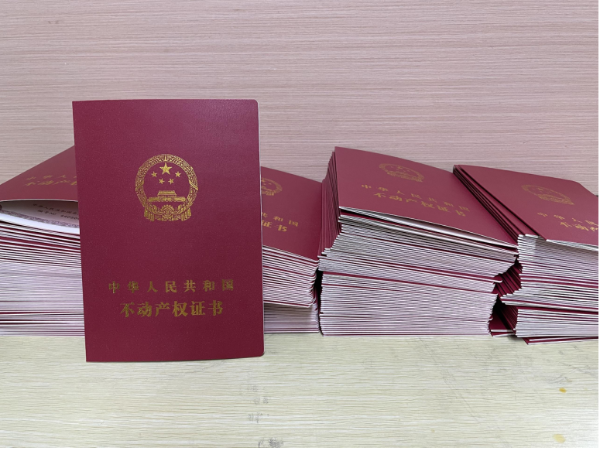 白云区不动产登记中心高效完成广州市建轩房地产开发有限公司的600多宗房屋首次登记,企业在春节前顺利拿到房产证。