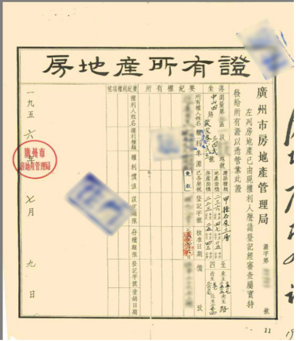 1956年房地产所有证(广州市房地产档案馆馆藏)
