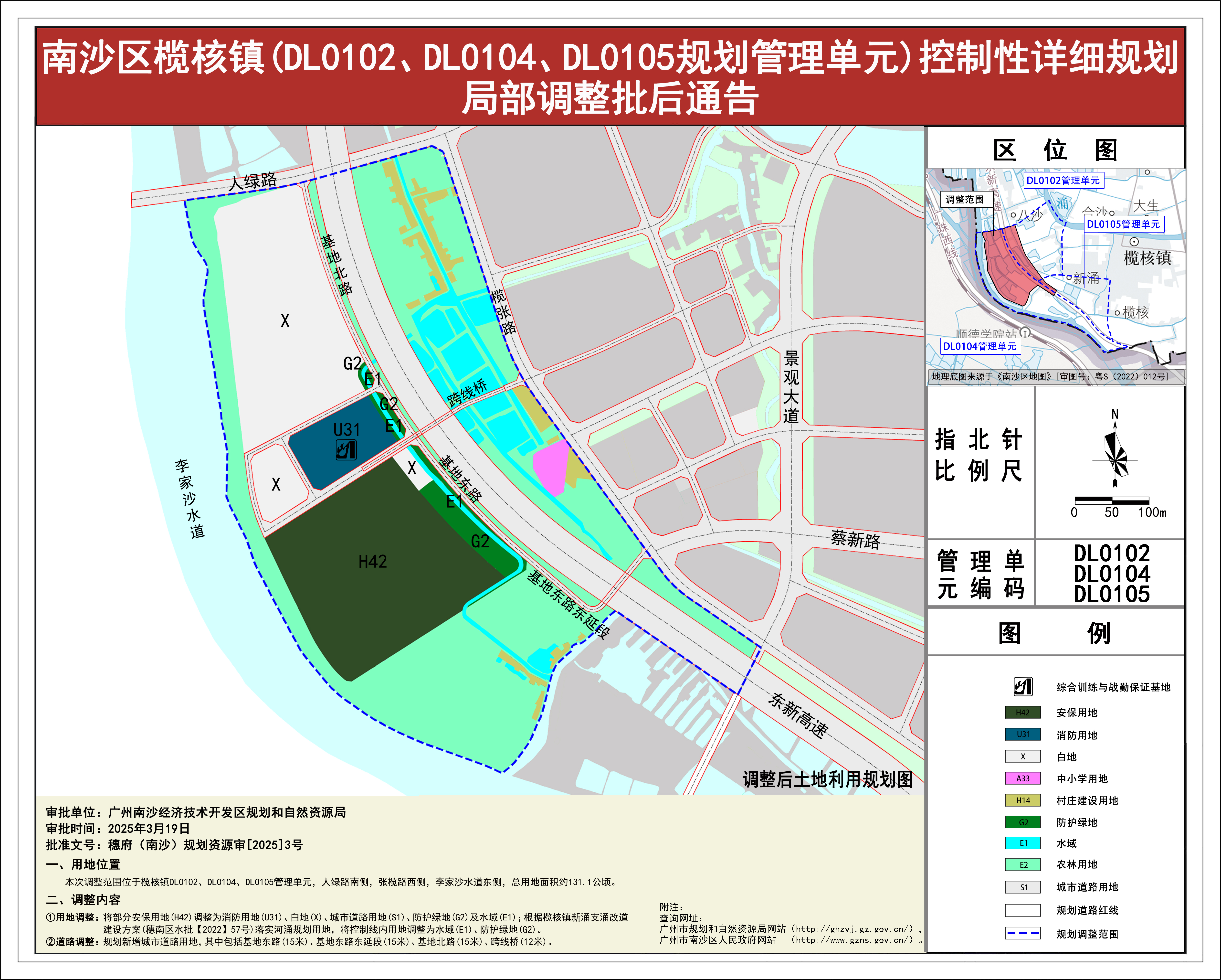 2.《南沙区榄核镇(DL0102、DL0104、DL0105规划管理单元)控制性详细规划局部调整》批后通告图