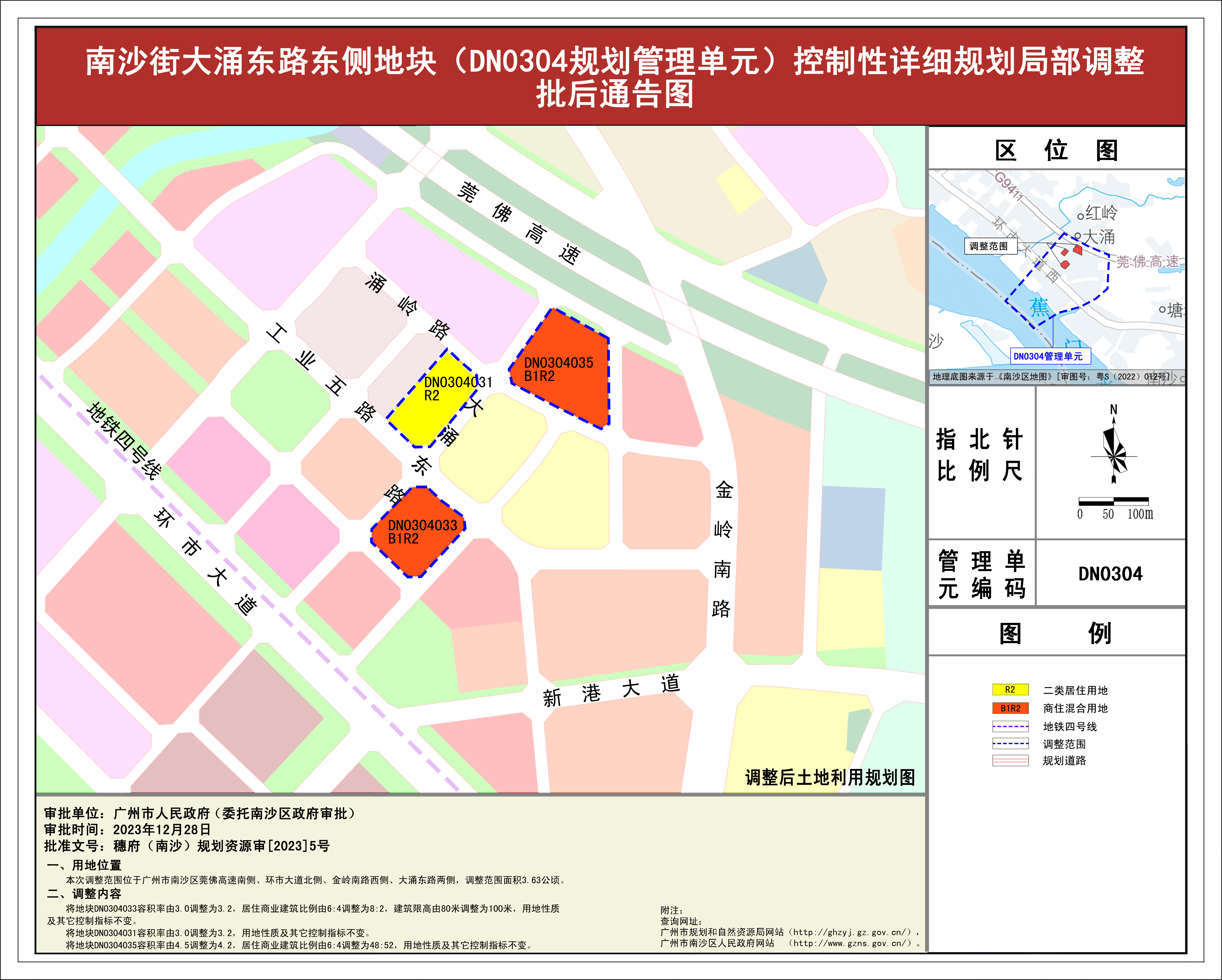 7.南沙街大涌东路东侧地块(DN0304规划管理单元)控制性详细规划局部调整批后通告图