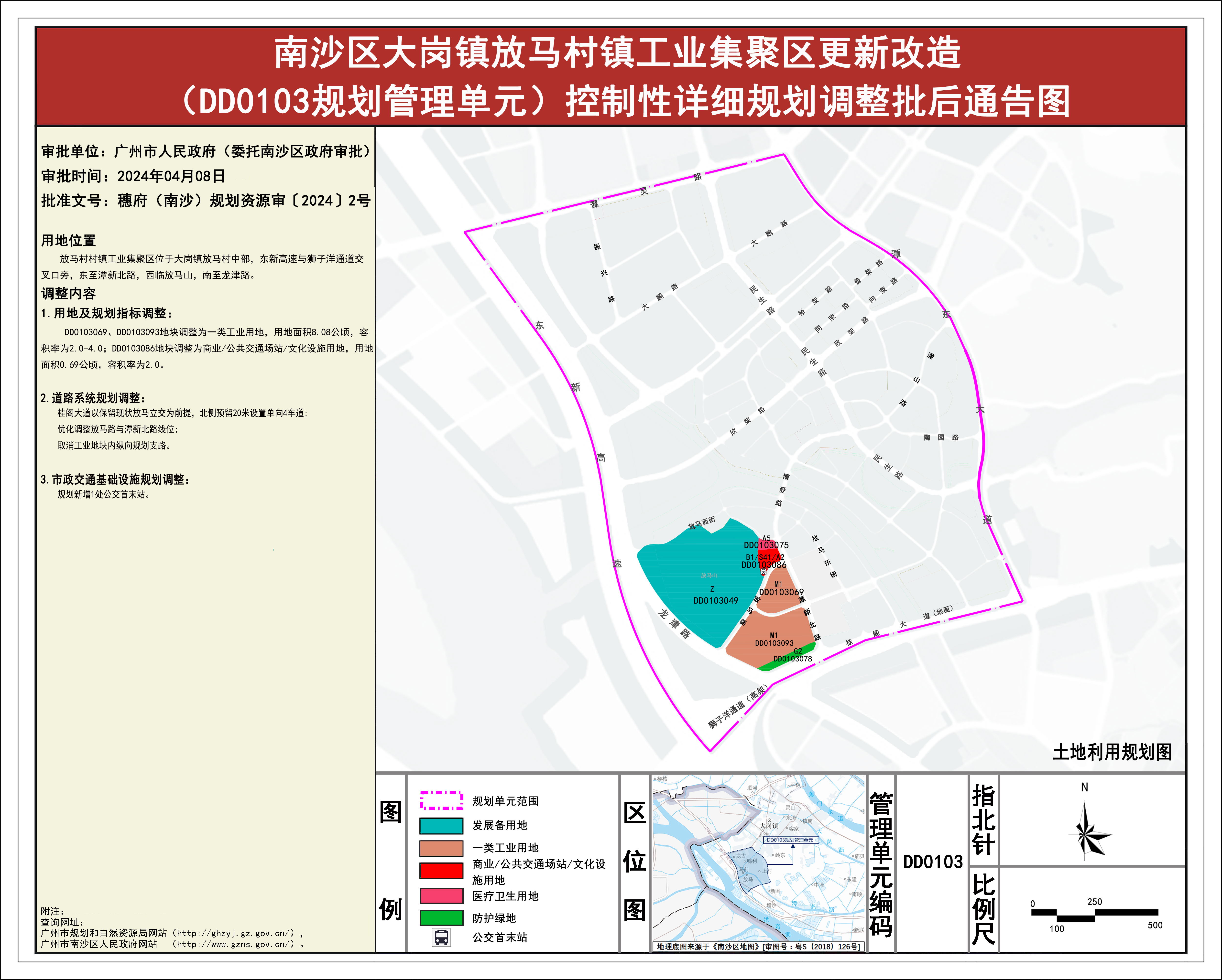 附件:南沙区大岗镇放马村镇工业集聚区更新改造(DD0103规划管理单元)控制性详细规划调整批后通告图