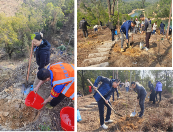 二是落实绿美行动。组织党员干部在花都区九龙湖绿美生态建设示范点开展义务植树活动,种植苗木3000株,同时参观九龙湖绿美生态建设区,切身体会绿美建设从城市生态、人文景观、市民生活品质和社会形象方面带来的美好改变;倡导党员结合社区双报到活动在穗好办APP--“羊城先锋”上认领“三微”行动(增绿植绿微项目、认捐认种微心愿、认养认护微服务),不断增强党员干部参与绿美生态建设的行动自觉。