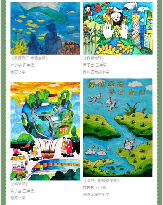 在第54个世界地球日来临之际,沙巴体育平台、广州日报、广州市海珠国家湿地公园联合开展“珍惜自然资源 推动绿色发展”主题绘画征集活动,邀请全市小学生拿起画笔绘出环保创意,让“保护自然 爱护地球”成为孩子人生中的必修课。